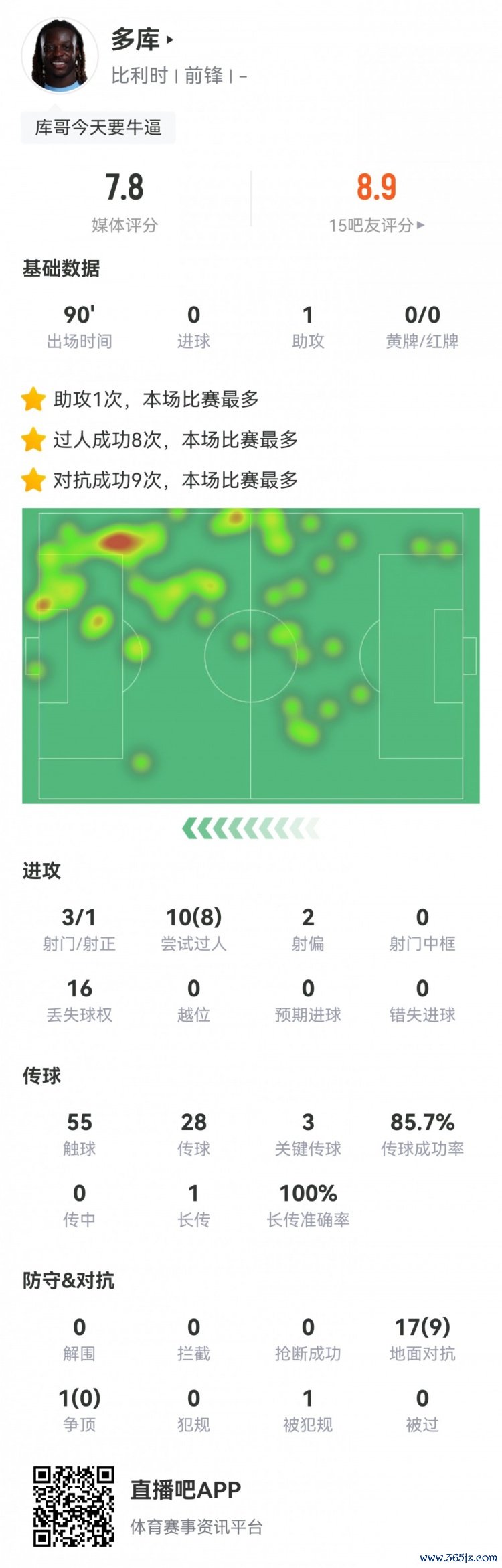 据媒体数据统计,多库在本次寰球杯欧洲区预选赛中完成34次浮松,比其他任何球员至少多出15次。