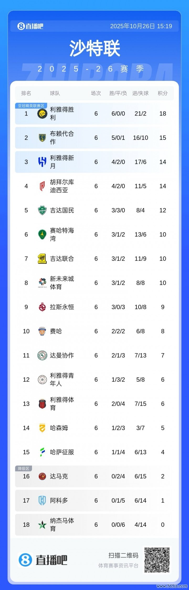 10月26日讯 沙特联第6轮,利雅得顺利客场2-0打败哈森姆,各赛事豪取10连胜!