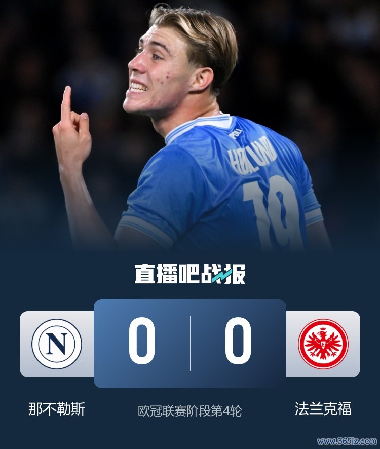 欧冠联赛阶段第4轮,那不勒斯0-0闷平法兰克福。