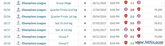 阿森纳前次降服拜仁是2015年欧冠小组赛主场2-0取胜,而后遭受5场不堪,包括邻接3场1-5惨败。