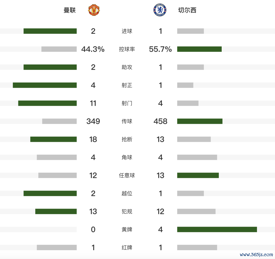 北京时辰9月21日,2025-26赛季英超第5轮焦点战,10东说念主曼联主场2-1打败10东说念主切尔西,赢得第2胜。门将罗伯特-桑切斯开场放倒姆伯莫被直红罚下,B费首开记载,扩大比分,但上半场为止前被红牌罚下,下半场扳回一球。
