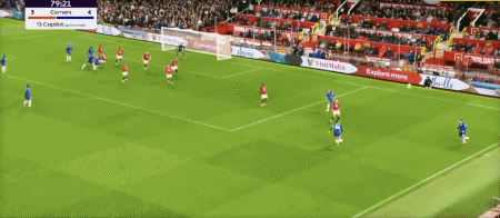 第83分钟,里斯-詹姆斯后场诞妄,B费带到禁区前右脚远射,被约根森扑出。
