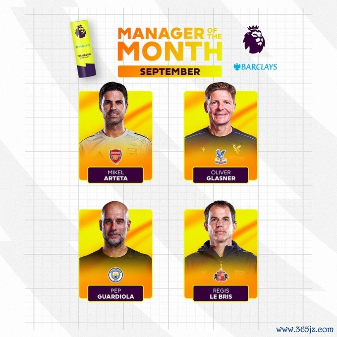 10月2日讯 英超公布9月份最好西宾候选名单,阿尔特塔、格拉斯纳、瓜迪奥拉和勒-布里斯入围。
