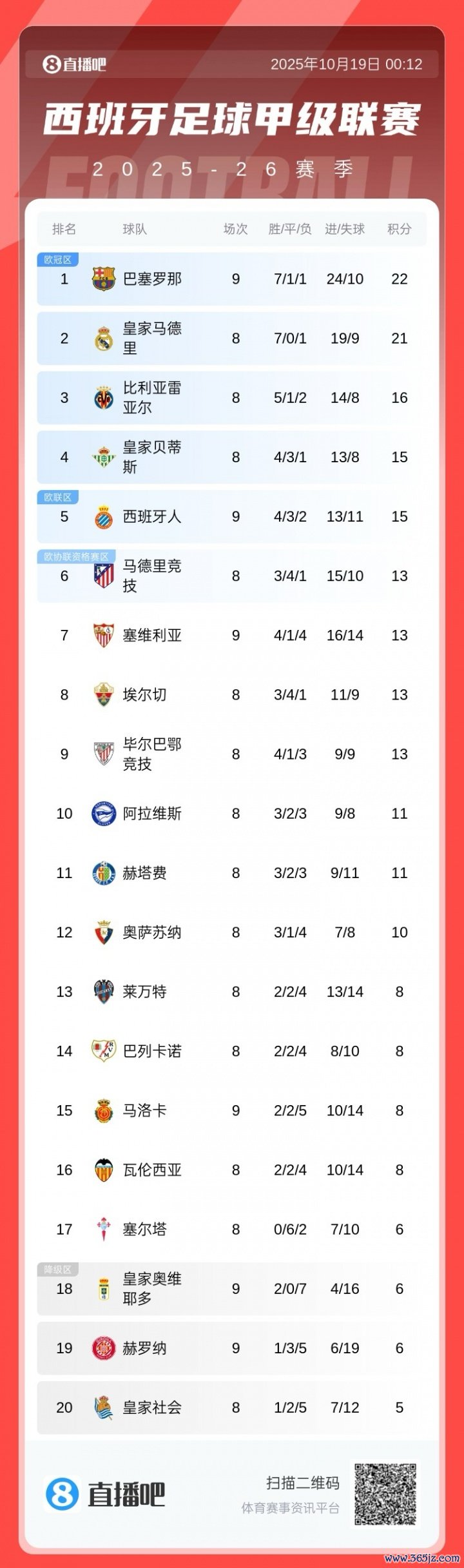 西甲积分榜:巴萨先赛暂升榜首脑先皇马1分,皇马明日客战赫塔费