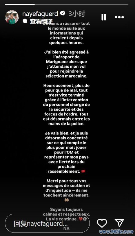 “运气的是,惊吓大于伤害,事件在安保东说念主员和王法部门的实时介入下速即平息。目下一切已交由警方惩处。我目下很好,也已将注重力重新放在最强大的事情上:为马赛服从,并在行将到来的国度队集训中自负地代表故国出战。”