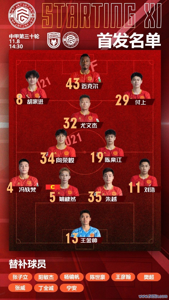 2025华润饮料中甲联赛第30轮,广西平果国晶客战陕西联结首发名单