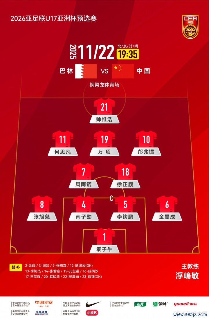 2026亚足联U17亚洲杯预选赛A组,中国队VS巴林队首发