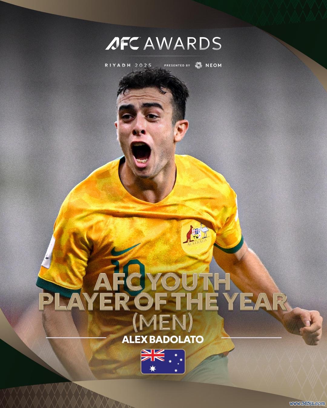 雷速体育10月17日讯 亚足联授奖仪式至当天举行,最终当今遵守于纽卡斯尔喷气机的澳大利亚时尚巴多拉托生效当选本年度亚足联最好年青球员。