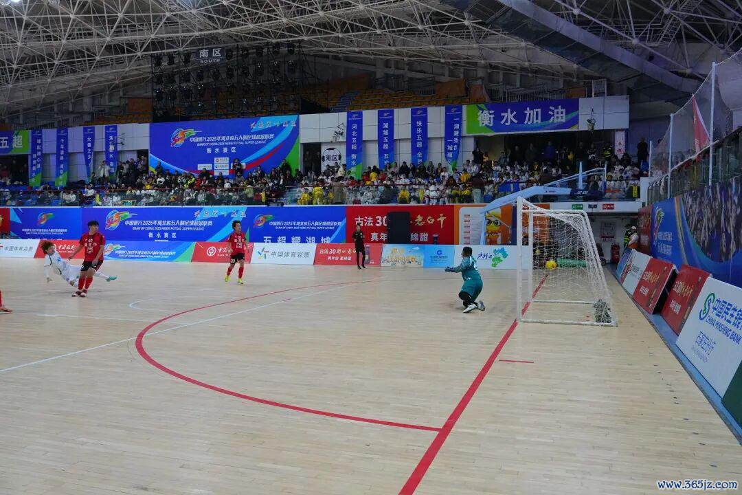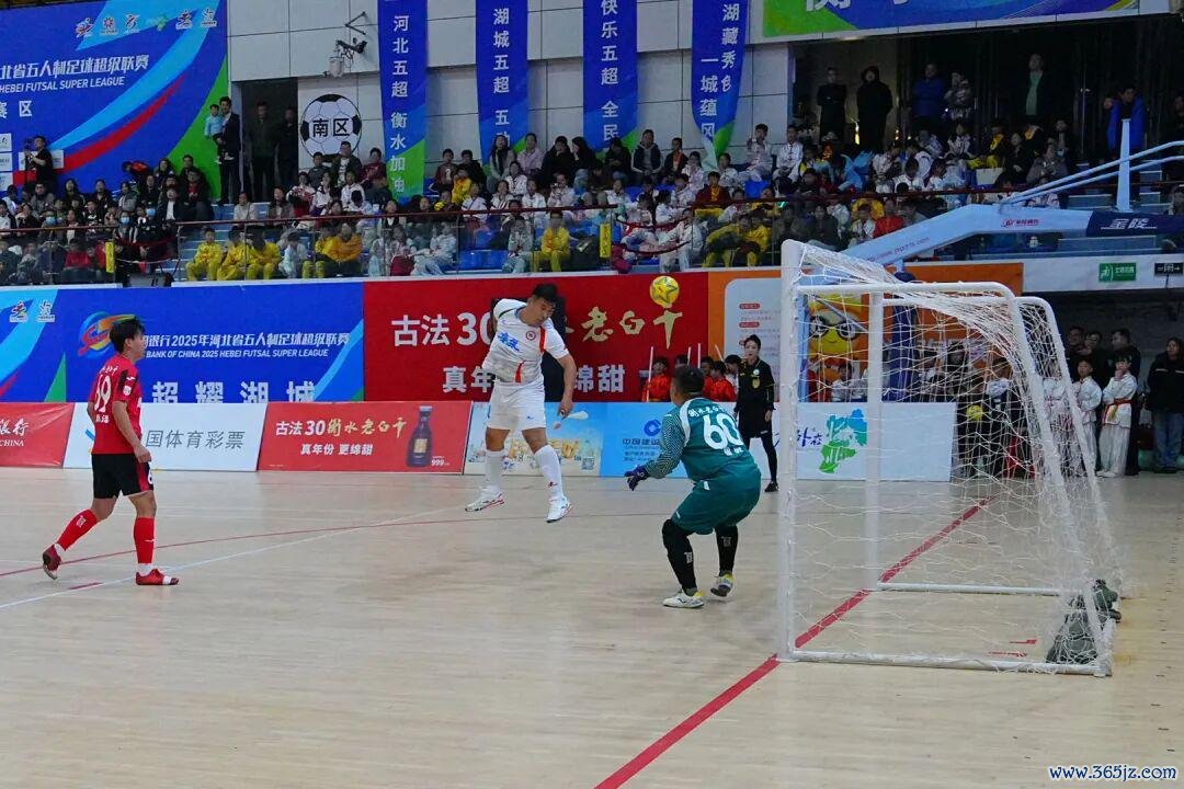 第三节开场,衡水队猛攻破门,将比分追至4:2;第7分钟,辛集队26号球员金相润接妙传突入禁区破门,再度拉开分差至5:2。
