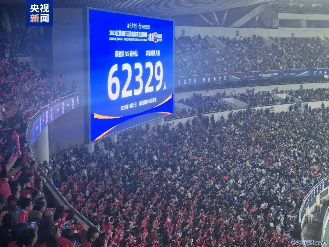 比赛进行到第75分钟,现场电子大屏通晓本场不雅赛东谈主数为62329东谈主,创下我国业余足球赛事不雅赛东谈主数新记录。